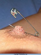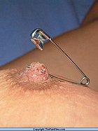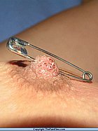 LIFESTYLE'S PINNED TORTURED NIPPLES Hot fucking nasty slut Lifestyle was tied down the bed fucking naked while her master is pushing pins on her perky fucking tits. She was screaming like fuck plus her master placed pins on her cunt too.